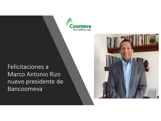 En Junta Directiva del 23 de septiembre, Bancoomeva, designó al Doctor MARCO ANTONIO RIZO CIFUENTES como Presidente y representante legal de BANCOOMEVA, nombramiento que queda sujeto al trámite de posesión que debe surtirse ante la Superintendencia Financiera de Colombia, por lo que el ejercicio de cargo solo iniciará una vez se surta dicha posesión.