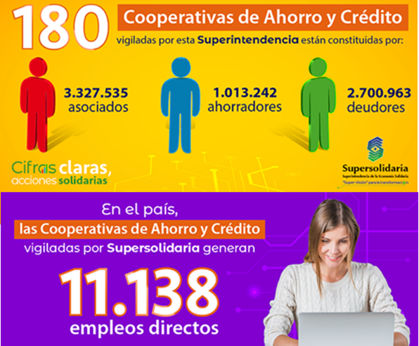 La Superintendencia de Economía Solidaria, vigila cerca de 3.616 instituciones, que reportan información como: Cooperativas de Ahorro y Crédito, Fondos de Empleados, Asociaciones Mutuales y Otras Organizaciones Solidarias.